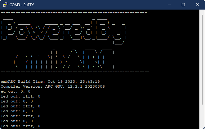 embarc_osp\example\baremetal\blinky > make TOOLCHAIN=gnu BOARD=iotdk run