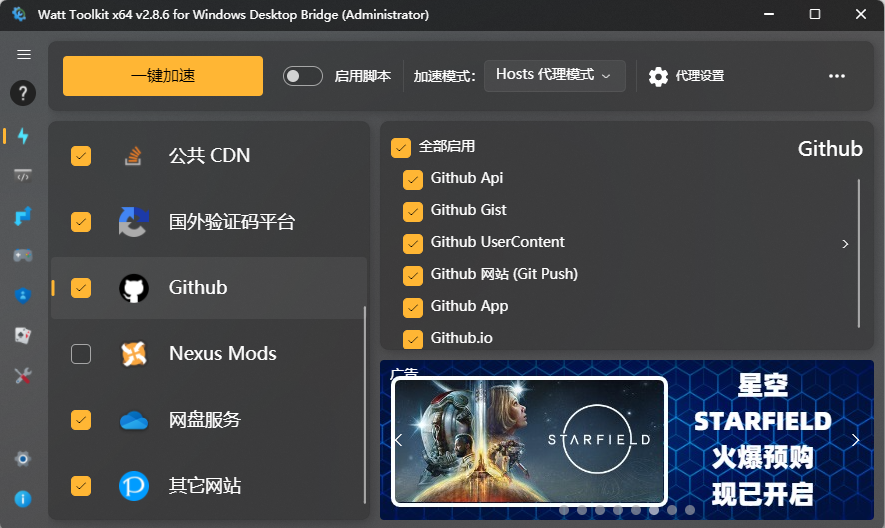 在Microsoft Store安装Watt Toolkit,把github和各种有的没的小网站勾上点加速。