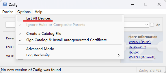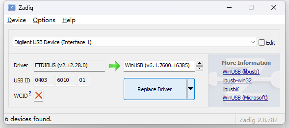 安装 Zadig 将FTDI驱动替换为WinUSB驱动