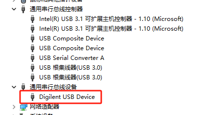 测试:转换完成后查看设备管理器,Interface1对应的USB Serial Converter B转换成了Digilent USB Device(COM端口设备仍然存在)