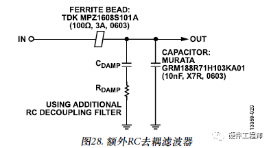 添加大电容(Cdamp)与串联阻尼电阻(Rdamp)的组合