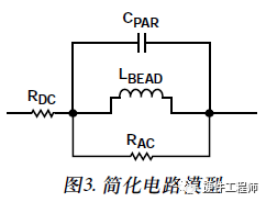 Rdc:直流电阻,Cpar:寄生电容,Lbead:磁珠电感,Rac交流电阻。