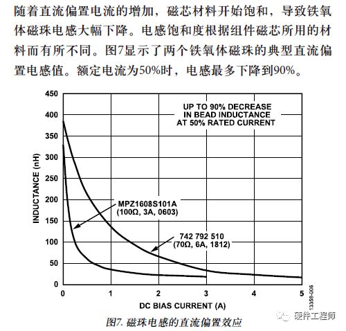6、 磁珠和电感都具有直流电阻,磁珠的直流电阻相对于同样滤波性能的电感更小一些,因此用于电源滤波时,磁珠上的压降更小