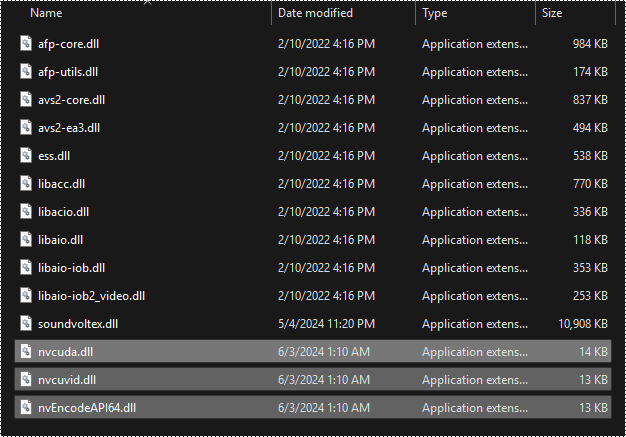 也许你的文件夹和上图不同,这是因为存在 modules 文件夹,这是 Spice 自动检测的配置文件夹,使文件目录保持简洁。如果你的游戏没有这个文件夹,则会在根目录中存在许多不同的 dll 文件,例如 soundvoltex.dll。